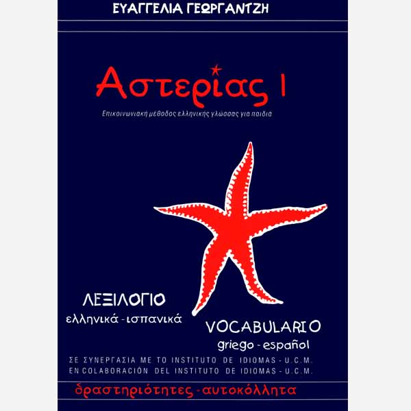 The Vocabulary 1 is not just a glossary companion, but also a workbook with various activities. The children build up their own vocabulary bank with new words from each unit, translating from their first language (L1) to the second/foreign language (L2) or vice versa. In addition, they fill out 10 double pages at the end of the book. Each double page includes words with blanks for their matching stickers, in order for the students to create a thematic vocabulary units, e.g. The clothes I wear, The animals I love etc. In this way, children increase their vocabulary in a creative way, by matching words with pictures with the use of stickers and writing/ copying the Greek words or their translations. The vocabulary of Asterias 1 comprises 1000 words and expressions.