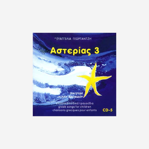 The CD-No 5 contains 15 songs for Asterias 3. It is a very important supplement to the basic material that enhances the acquisition of the Greek language and its proper pronunciation effortlessly, with the help of the rhythm of the music.