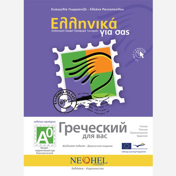 The material conforms to the Common European Framework of Reference for Languages (CEFR) and the requirements set by the Centre of the Greek Language for the Greek Language Certification (Ellinomatheia). The Textbook A0 contains 175 exercises with answer keys and is supported by audio material and supplementary exercises e-learning in the platform eFront via www.neohel.com