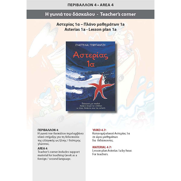 The educational material of the Textbook and Work book 1a in 43 lessons/teaching hours. In the PDF table for each lesson there are code numbers of the Textbook chapters and the Work book exercises and the corresponding page numbers.