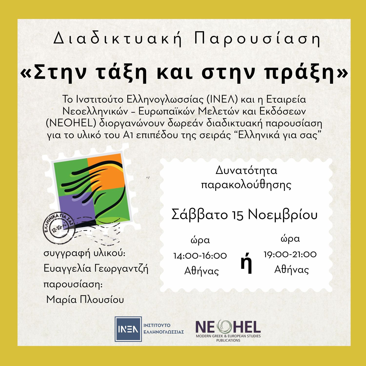 Το Ινστιτούτο Ελληνογλωσσίας (INEΛ) και η Εταιρεία Νεοελληνικών – Ευρωπαϊκών Μελετών και Εκδόσεων (NEOHEL) διοργανώνουν δωρεάν την πρώτη διαδικτυακή παρουσίαση