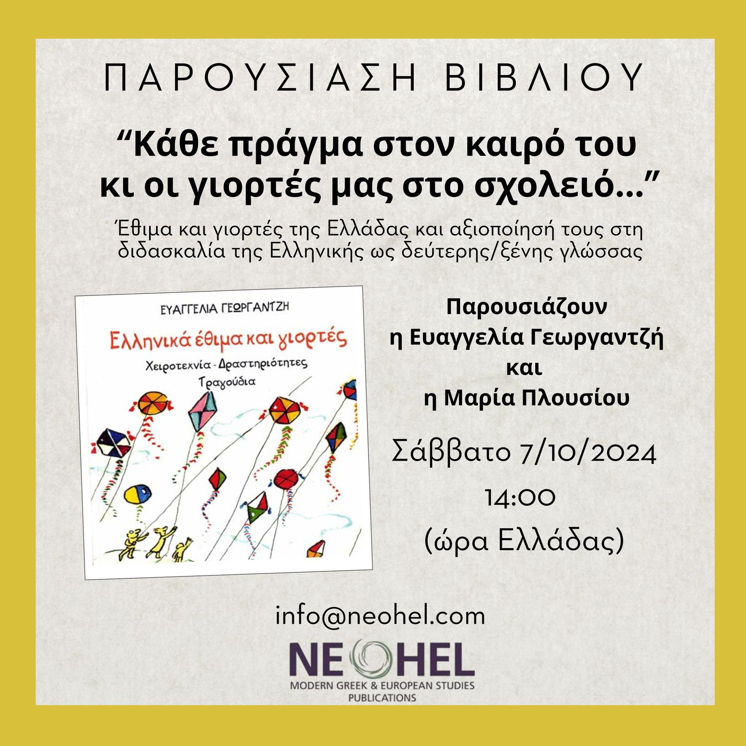 Παρουσίαση Βιβλίου: «Κάθε πράγμα στον καιρό του κι οι γιορτές μας στο σχολειό: έθιμα και γιορτές στη διδασκαλία της Ελληνικής ως δεύτερης/ξένης γλώσσας»