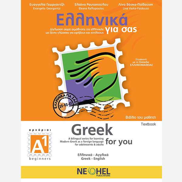 Textbook Greek for you A1 is part of the bilingual series for learning Modern Greek as a foreign language Greek for you for adolescents and adults. This bilingual material makes the classroom teaching easier, while at the same time it can be used for self-teaching.